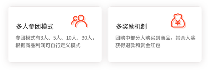 商品拼團模式是結合當下流行的“社交電商” 與 “賞金拼團” 的玩